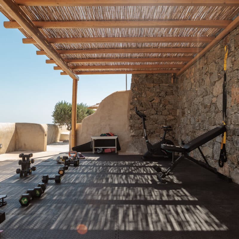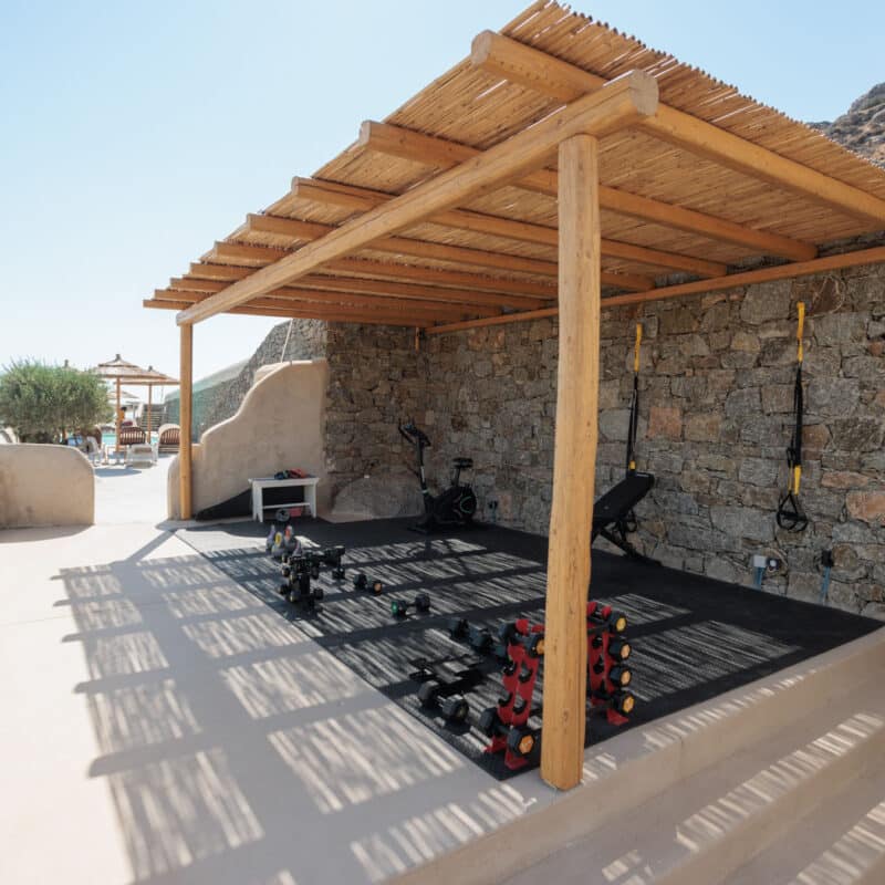 The open-air gym offers modern equipment and stunning hotel views. Guests enjoy fresh air while exercising, whether for yoga, cardio, or strength training, in a refreshing and inspiring outdoor setting.